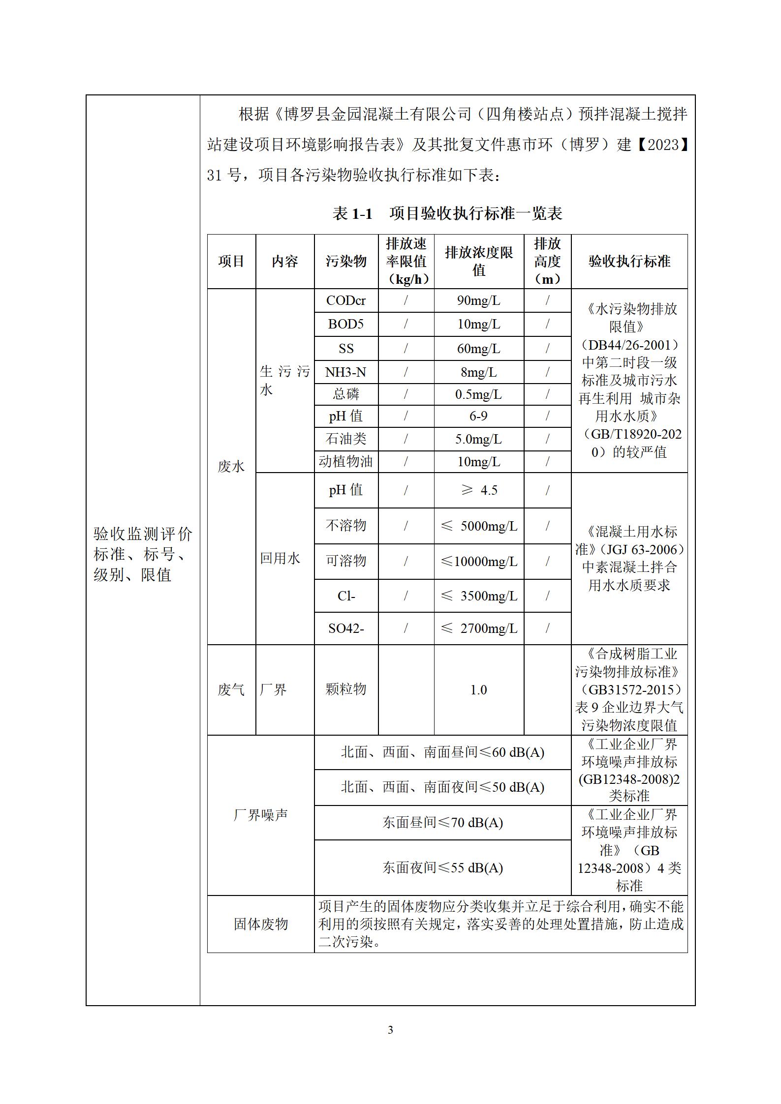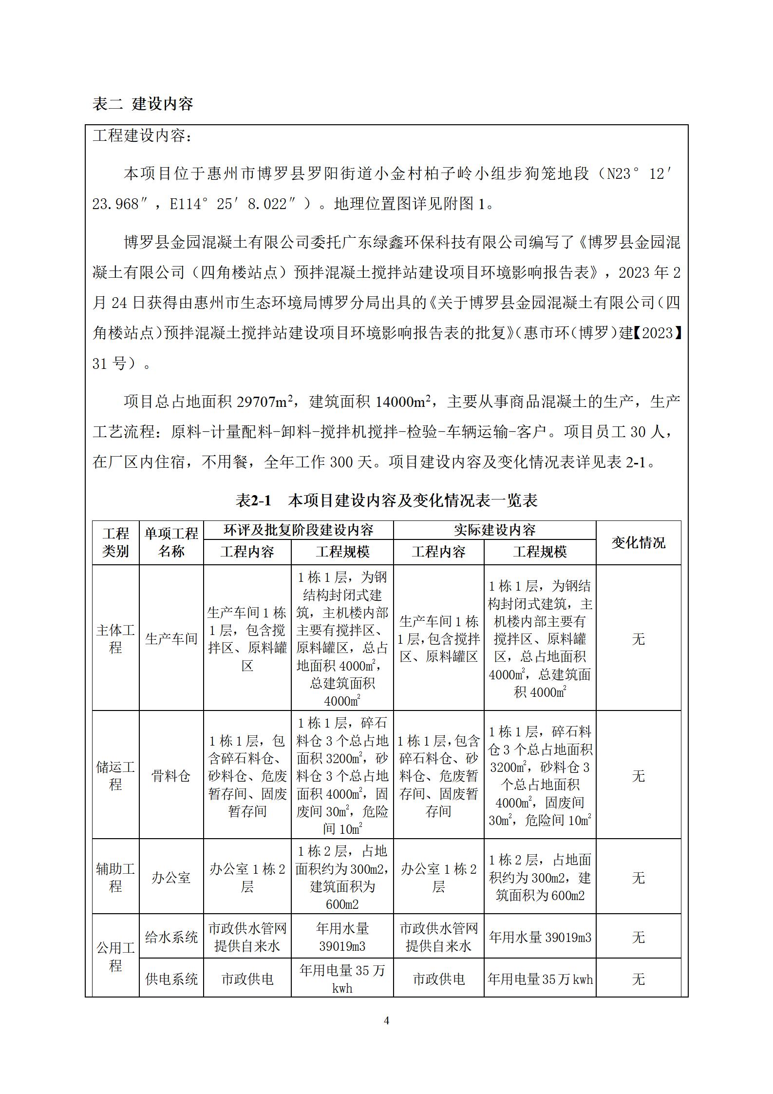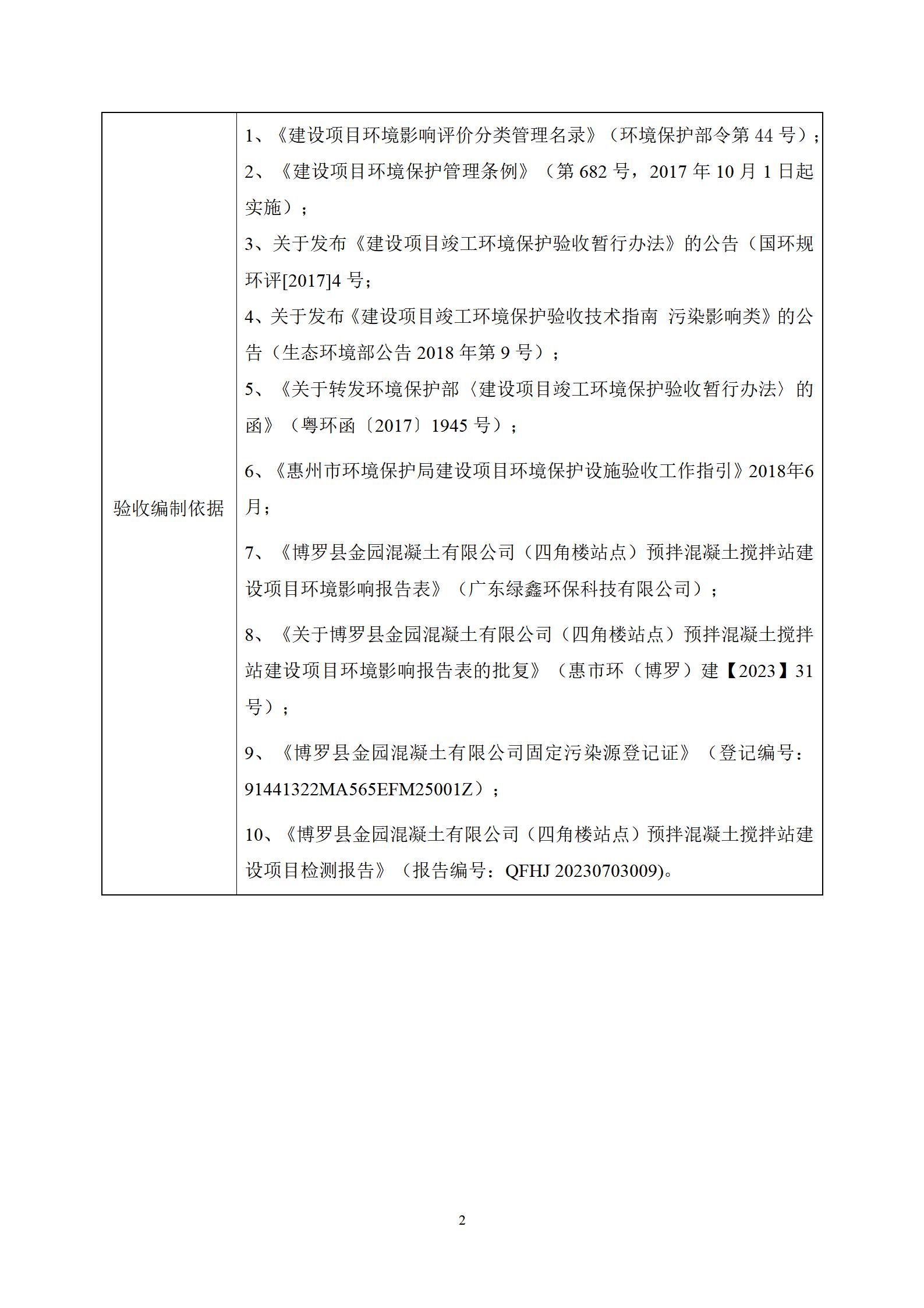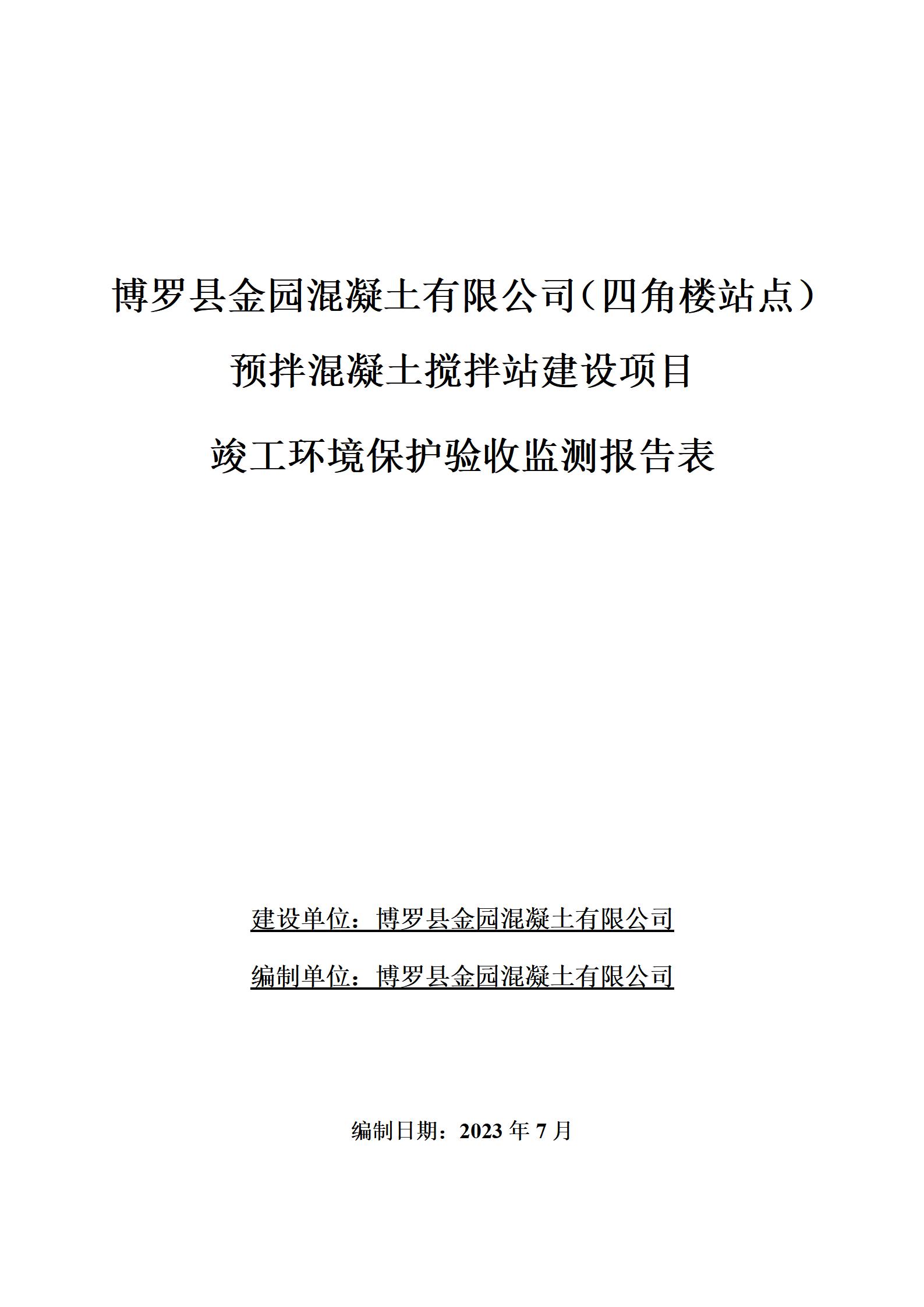 博罗县金园混凝土有限公司(四角楼站点)预拌混凝土搅拌站建设项目 竣工环境保护验收监测报告表