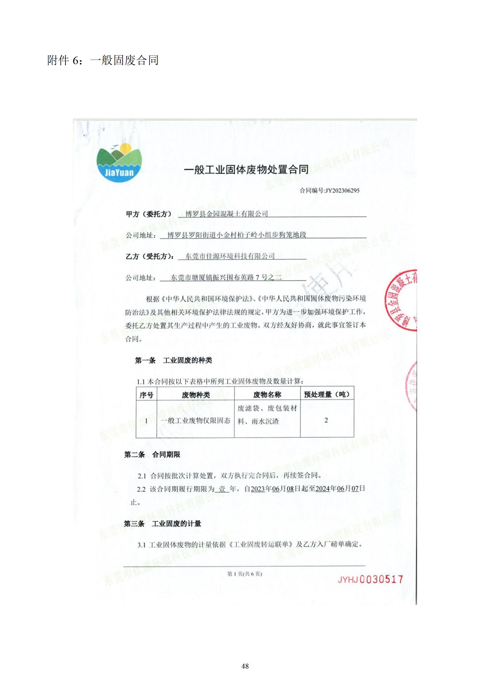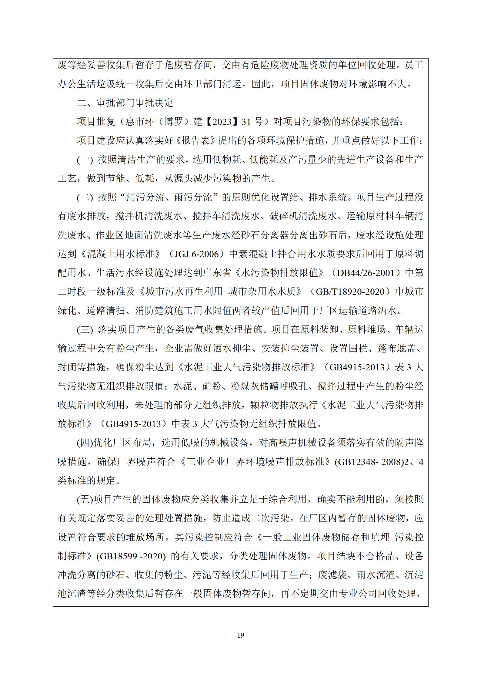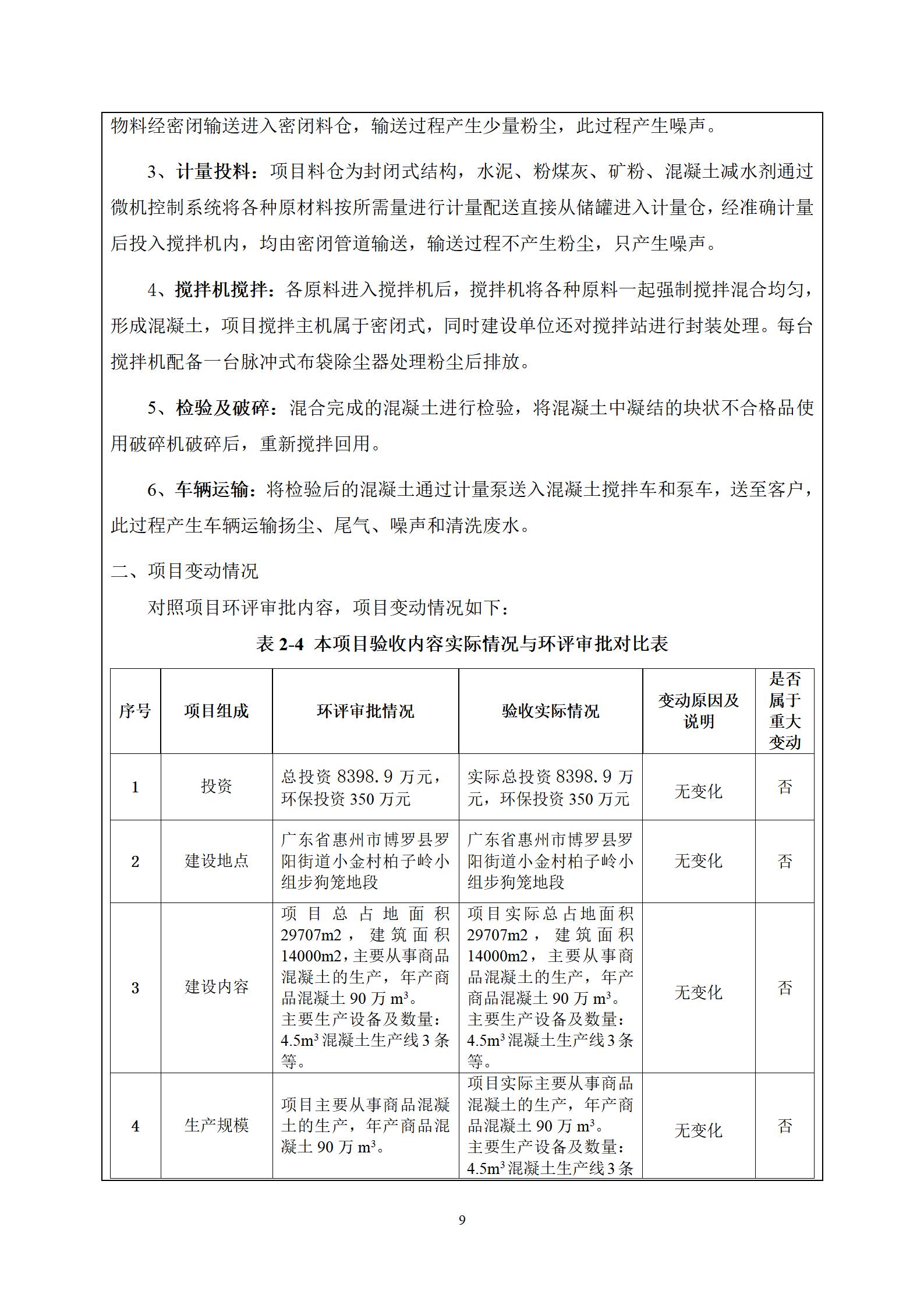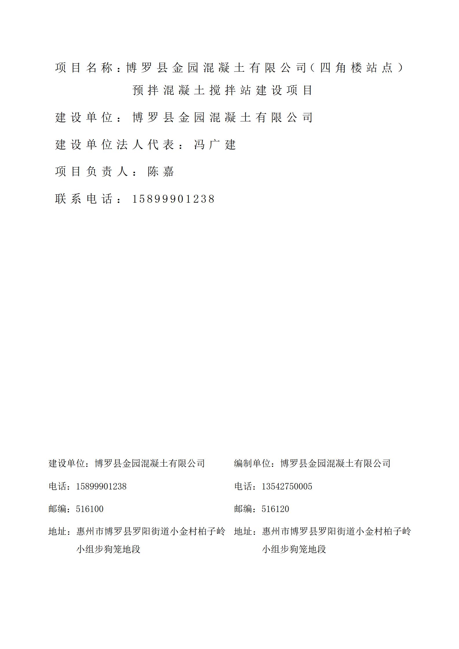 博罗县金园混凝土有限公司(四角楼站点)预拌混凝土搅拌站建设项目 竣工环境保护验收监测报告表