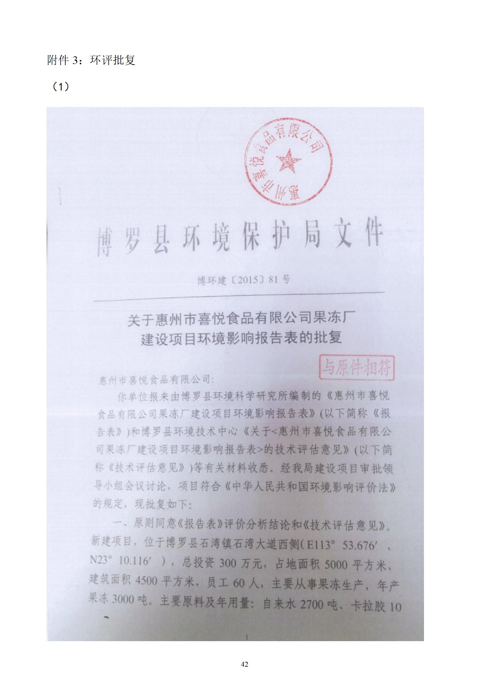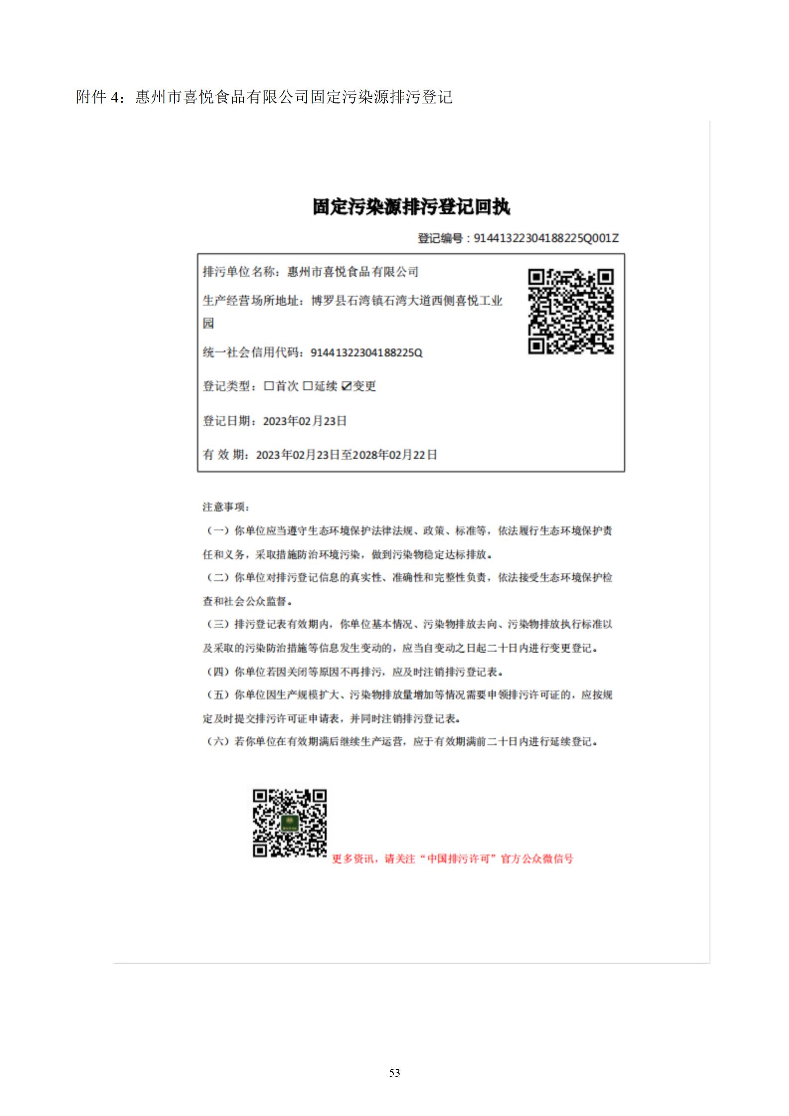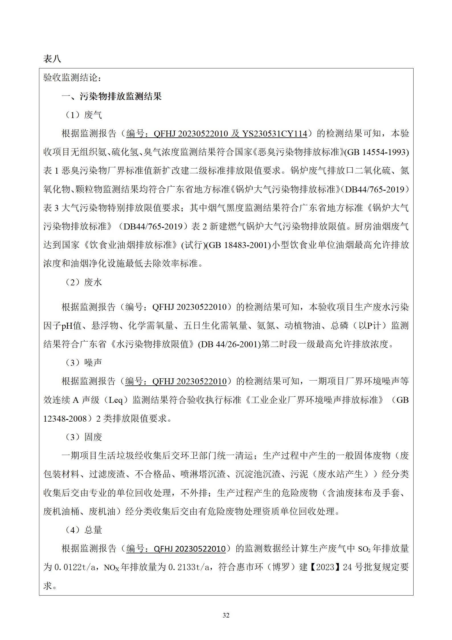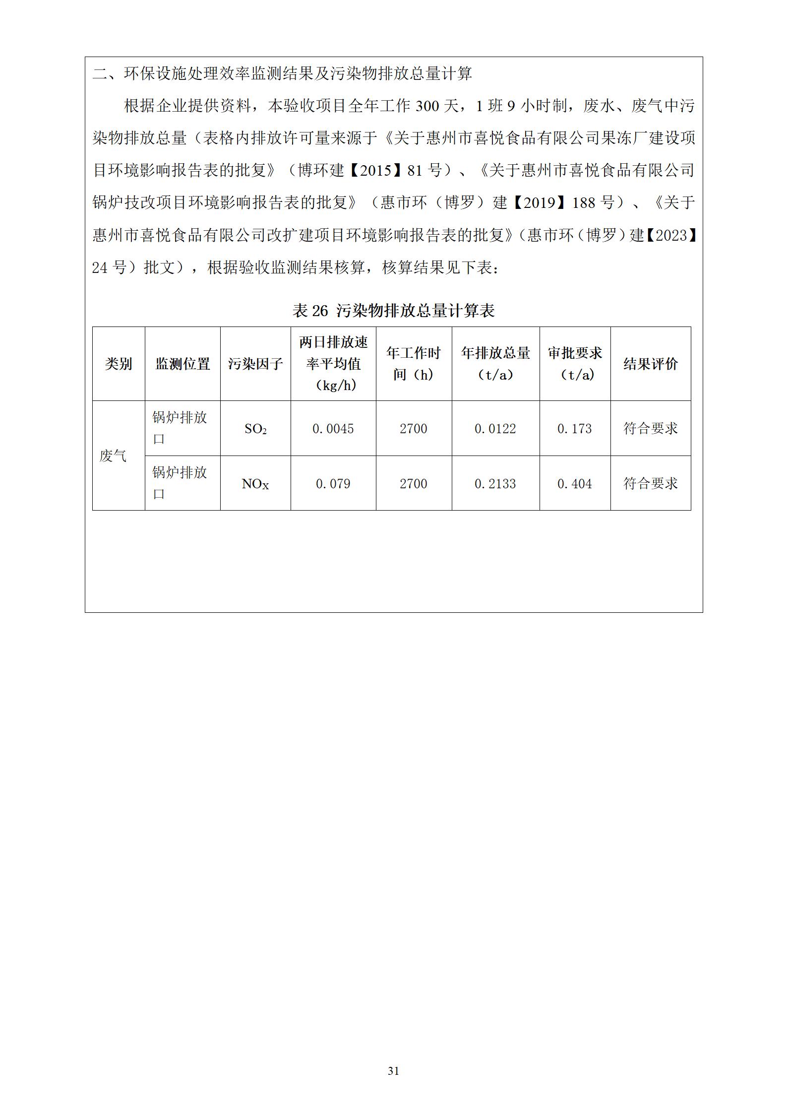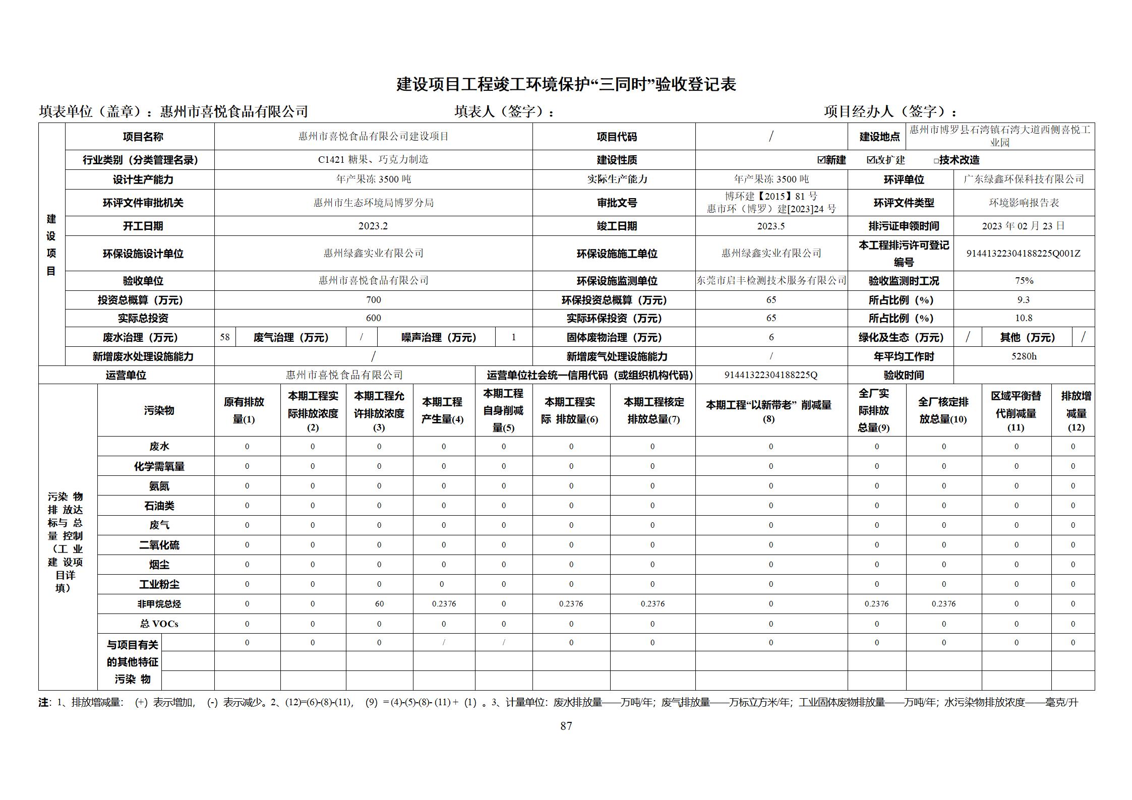 惠州市喜悦食品有限公司建设项目(一期) 竣工环境保护验收监测报告表