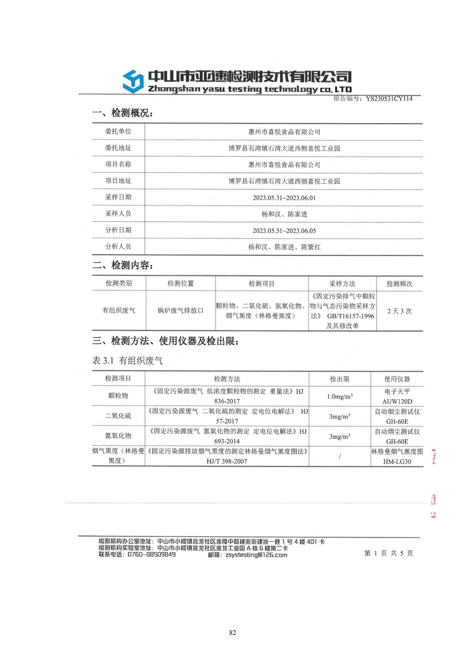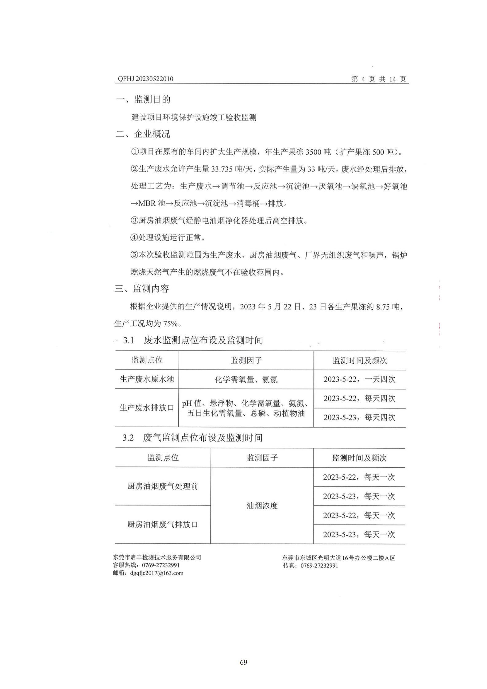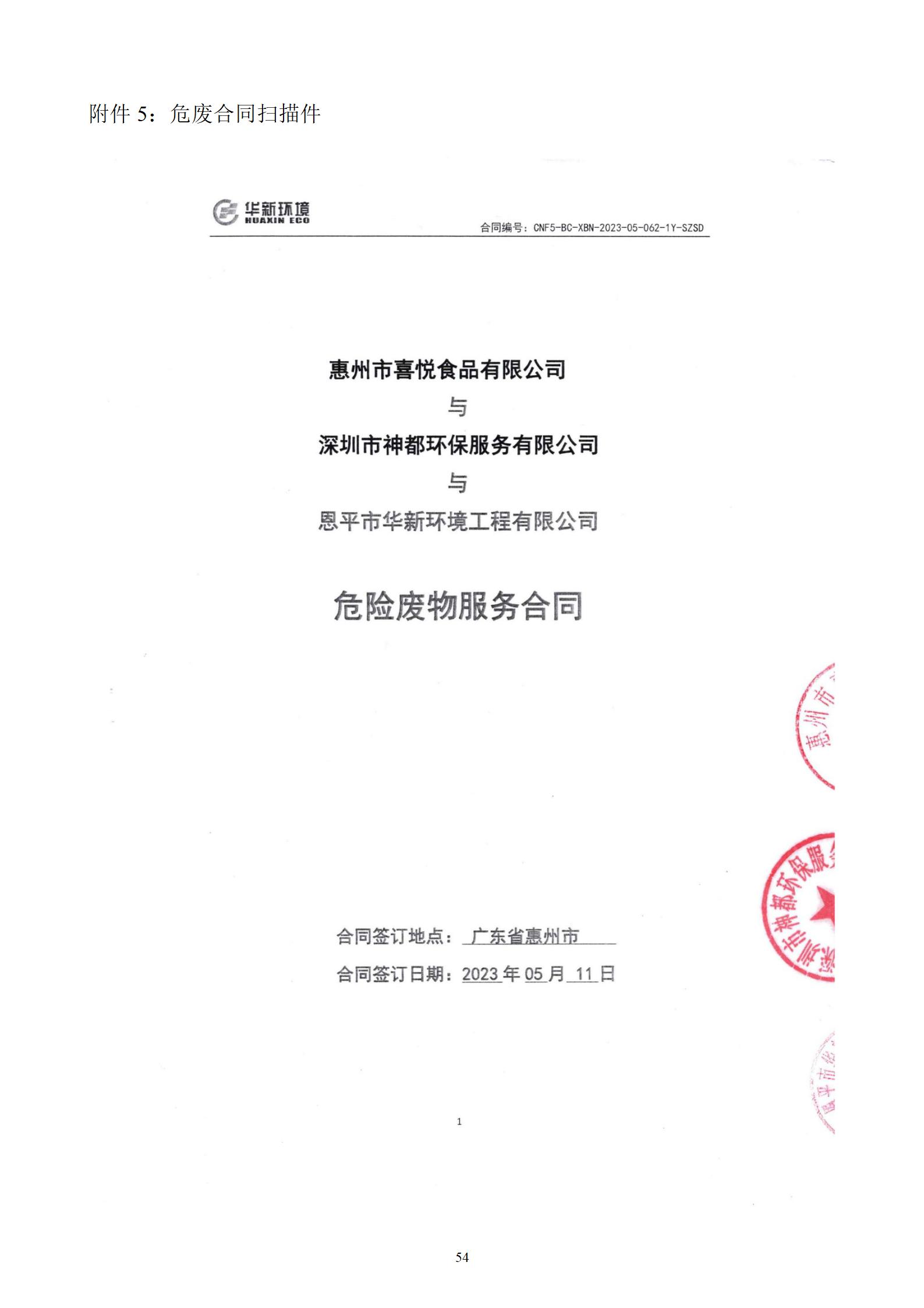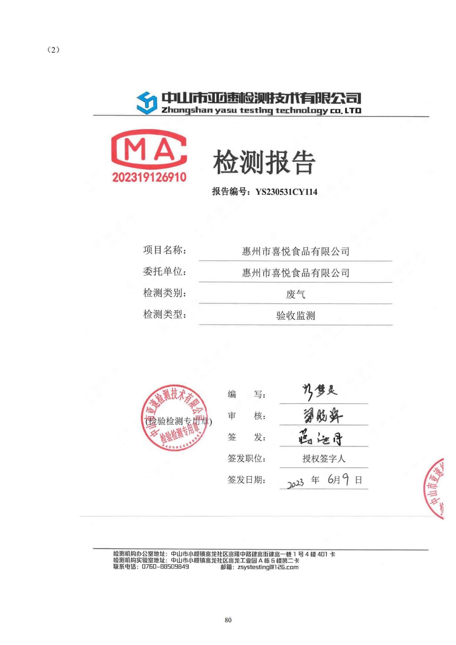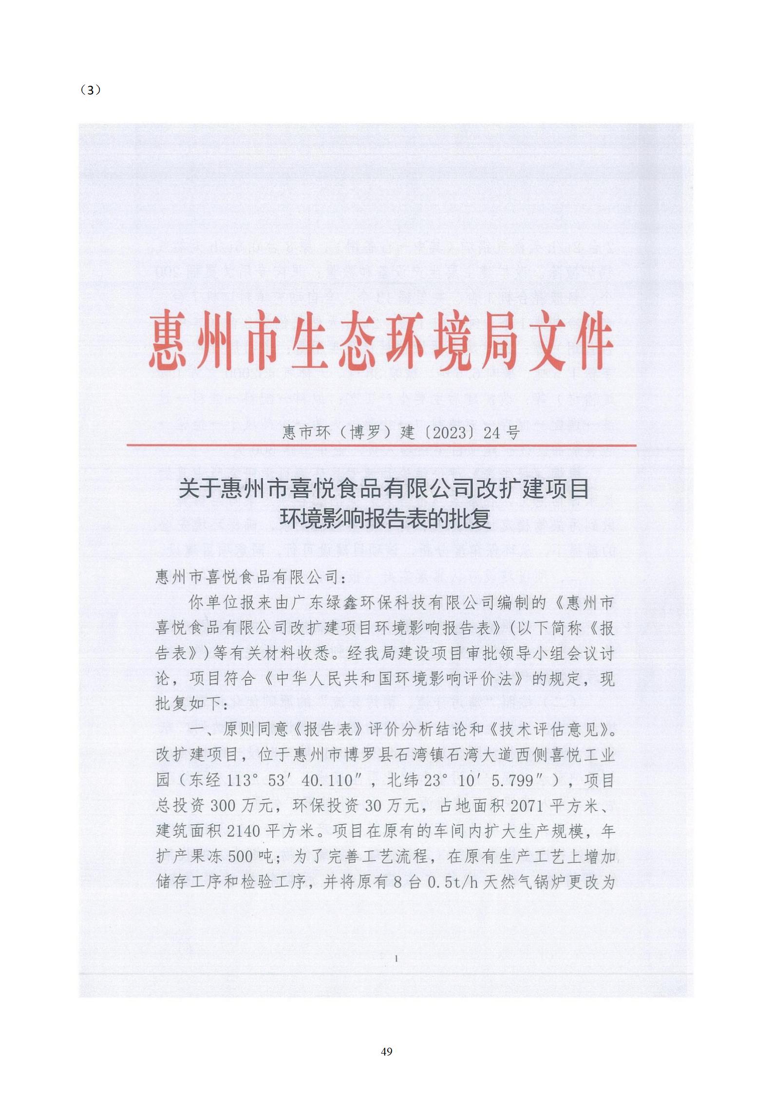 惠州市喜悦食品有限公司建设项目(一期) 竣工环境保护验收监测报告表