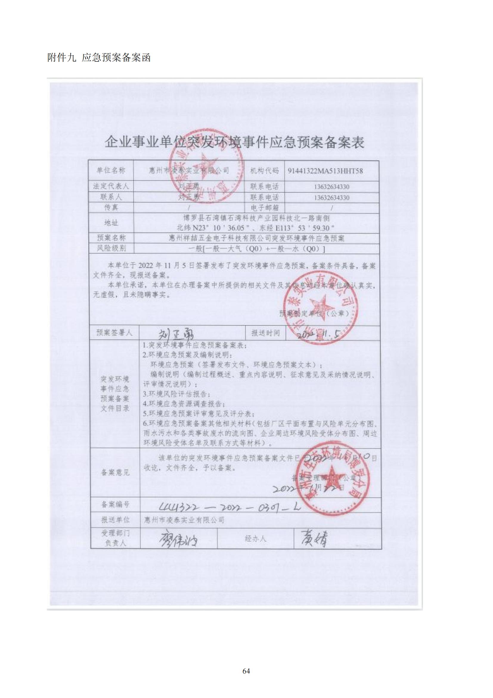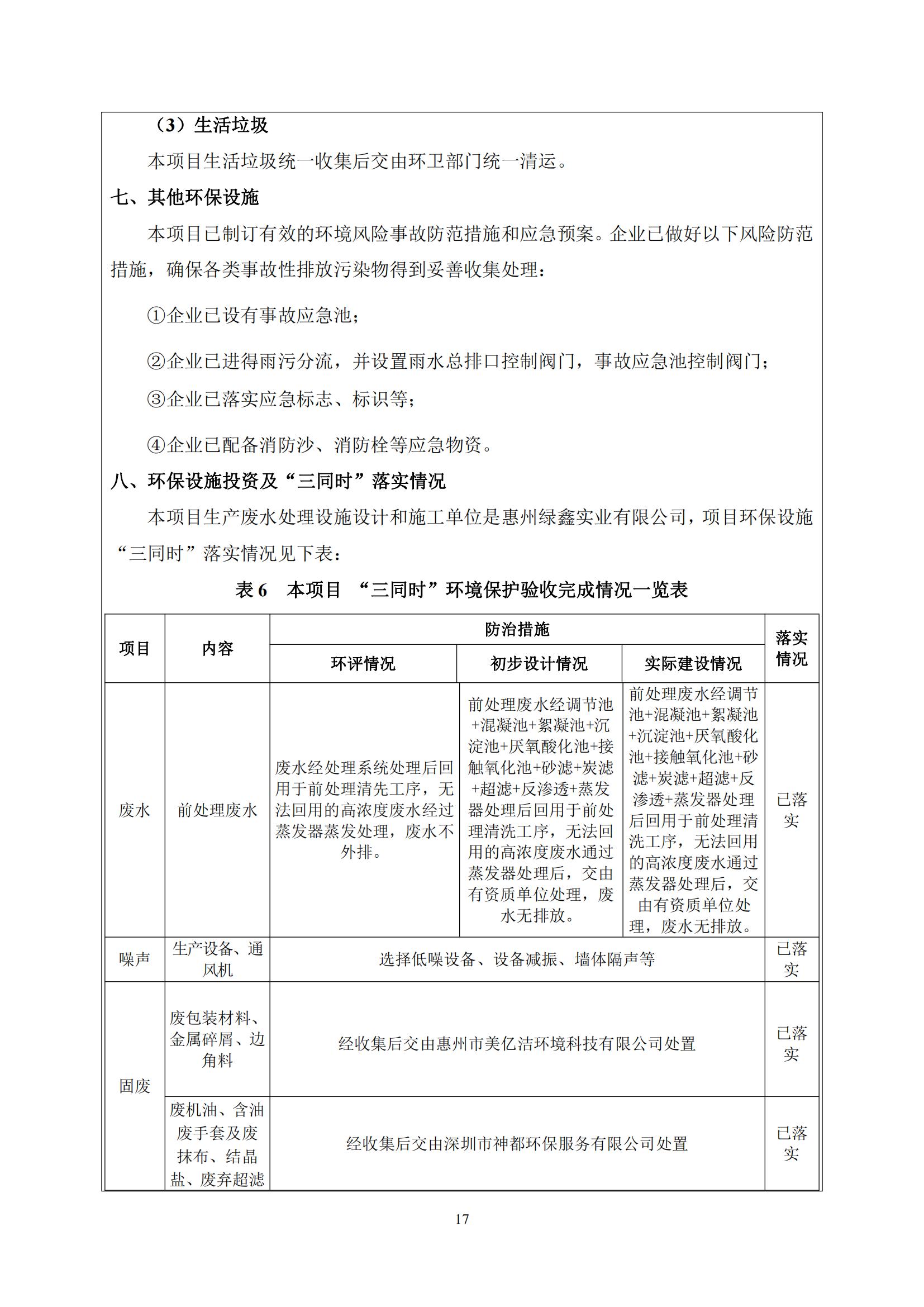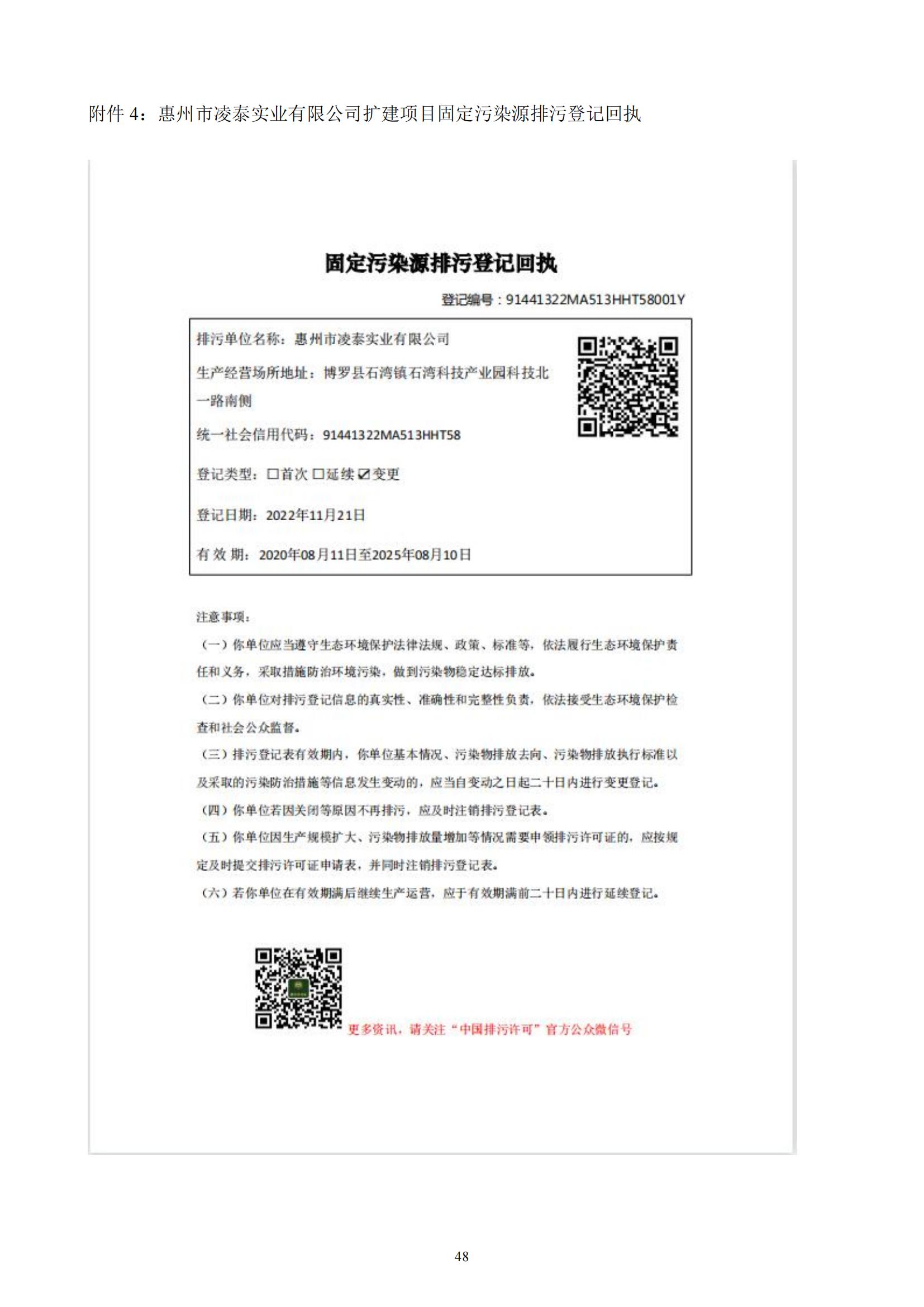 惠州市凌泰实业有限公司扩建项目 (一期) 竣工自主环境保护验收监测报告表