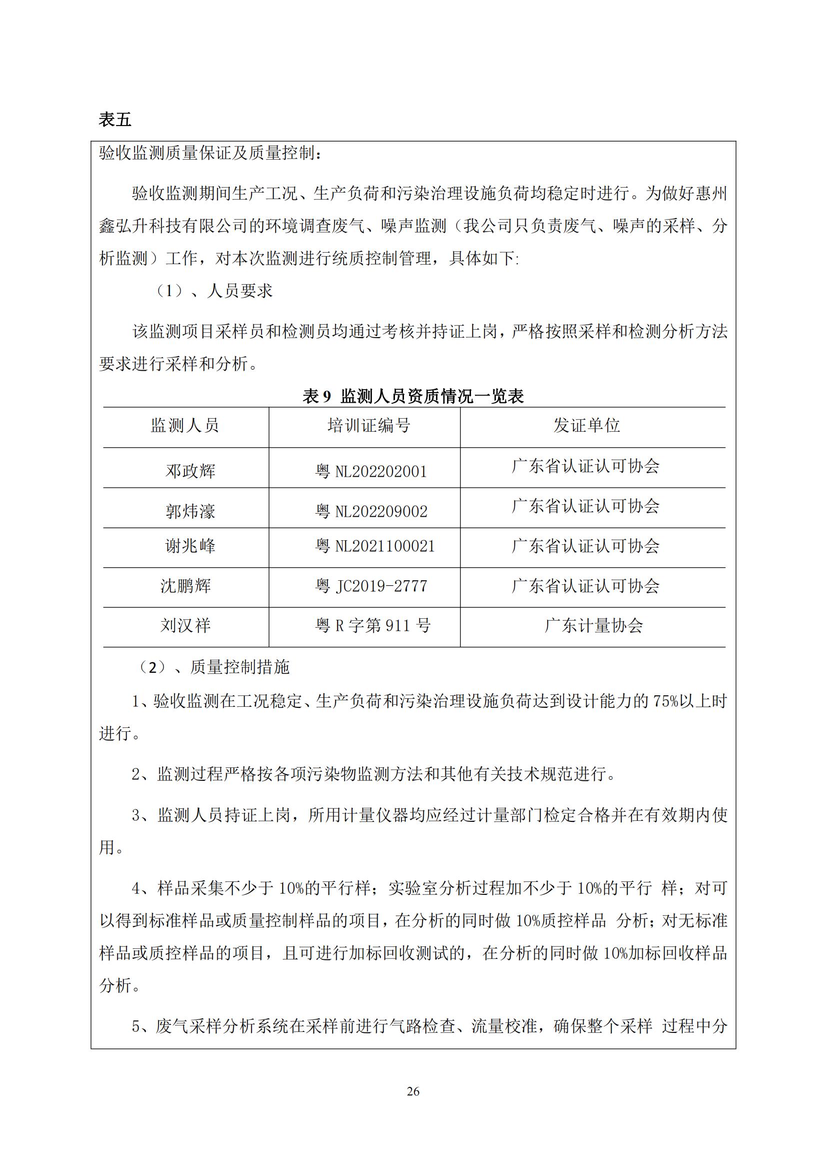 惠州鑫弘升科技有限公司建设项目(一期) 竣工自主环境保护验收监测报告表