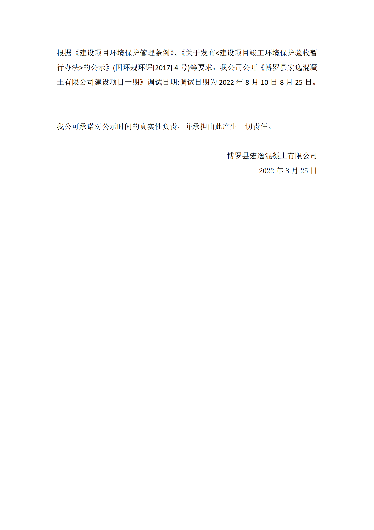 博罗县宏逸混凝土有限公司建设项目一期污染防治设施调试时间公示