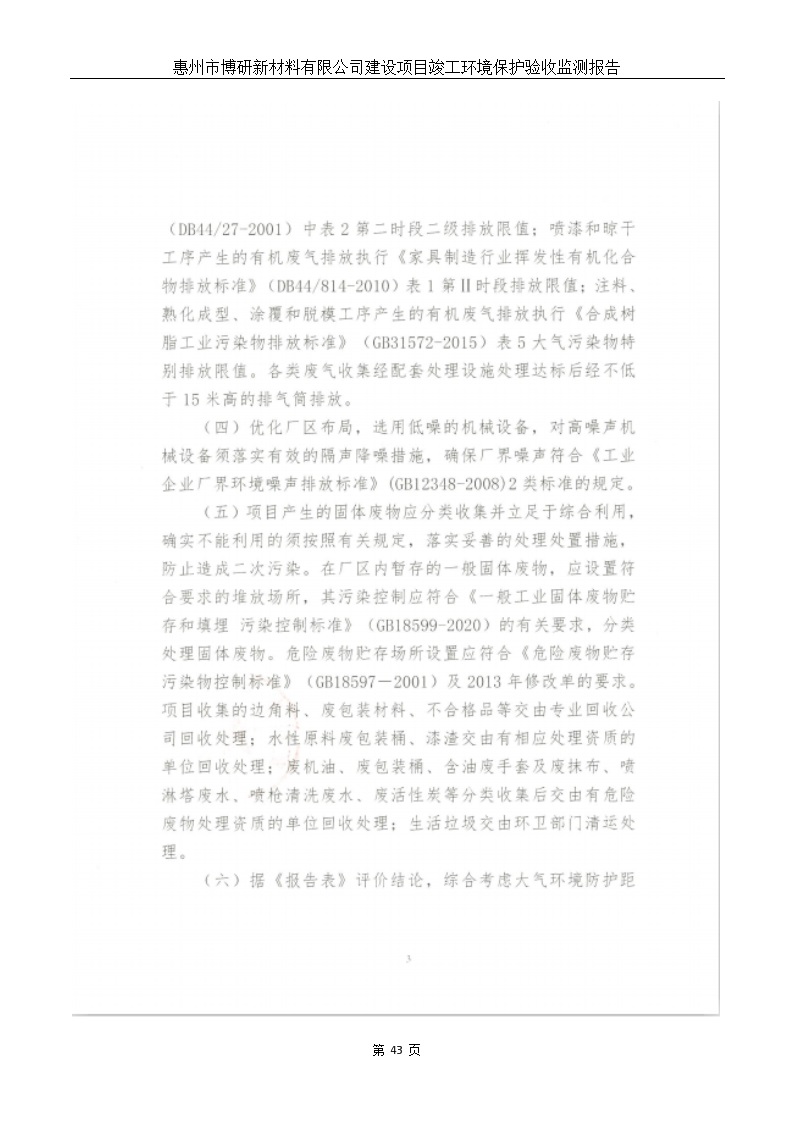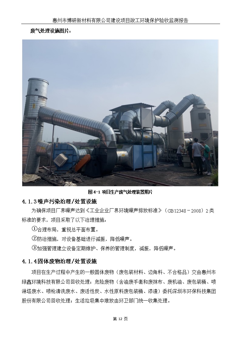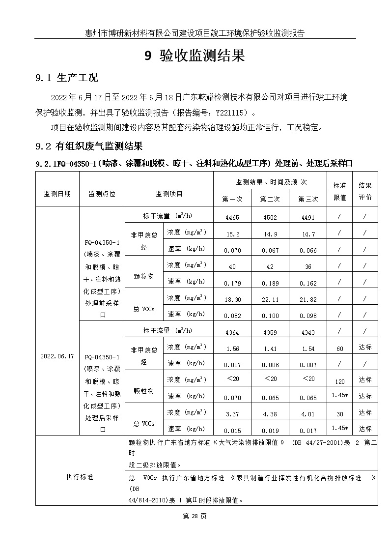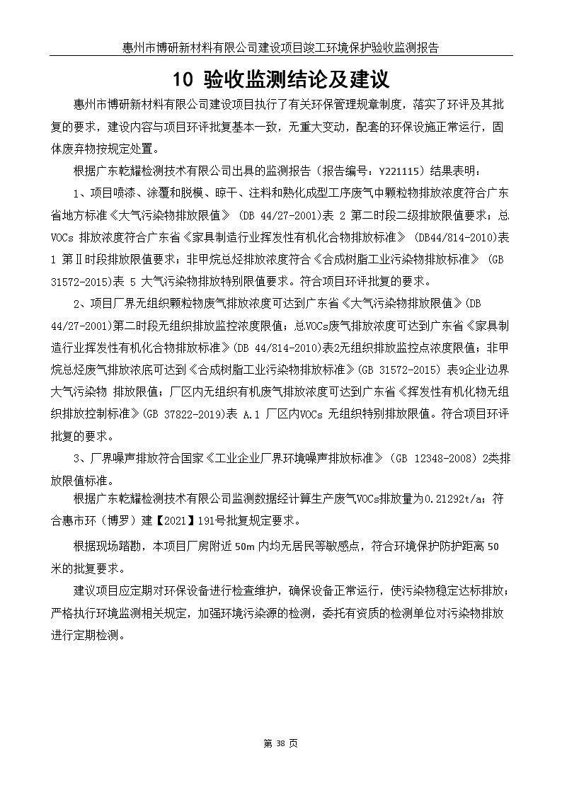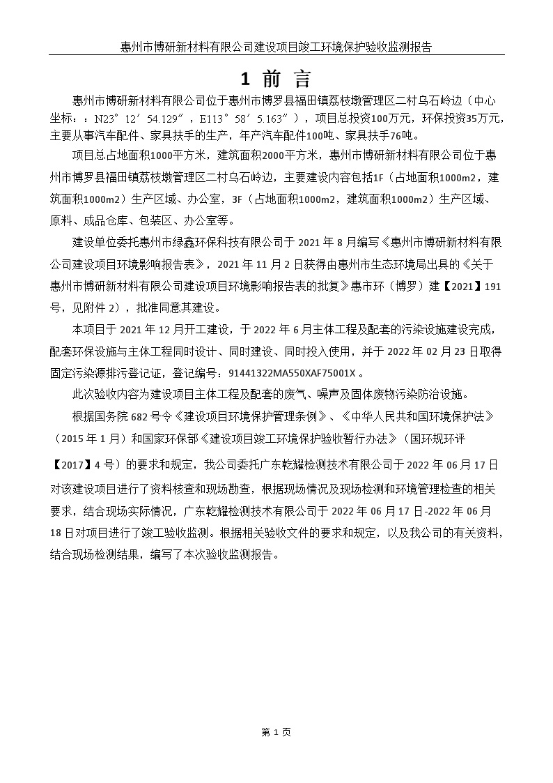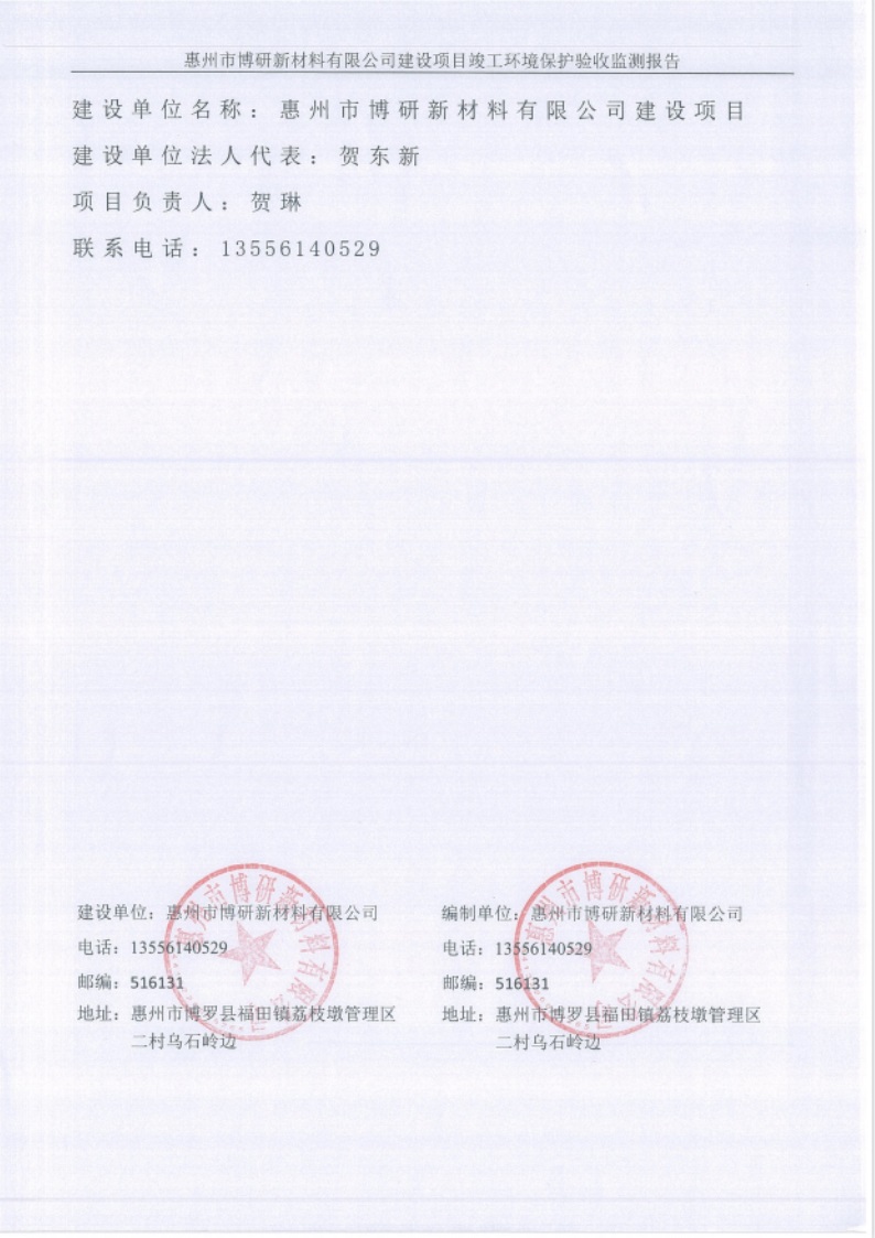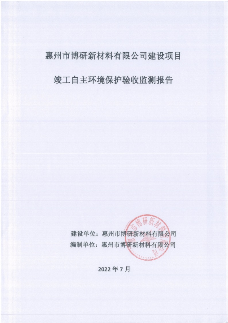 惠州市博研新材料有限公司建设项目 竣工自主环境保护验收监测报告