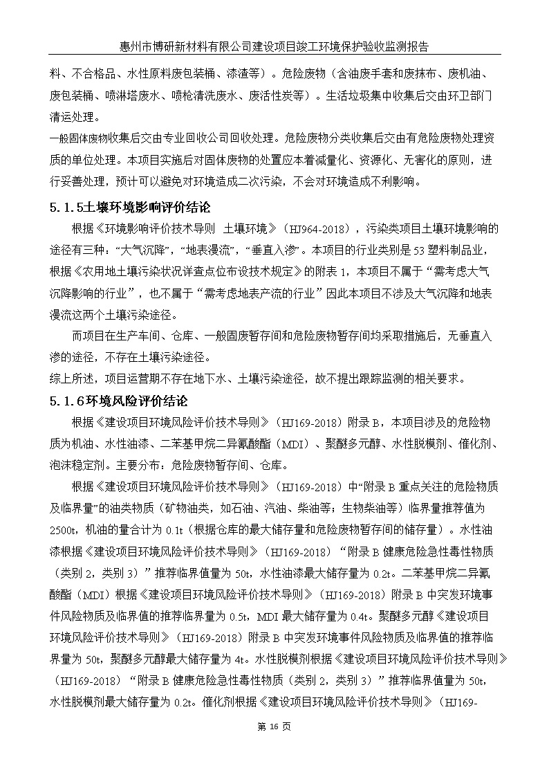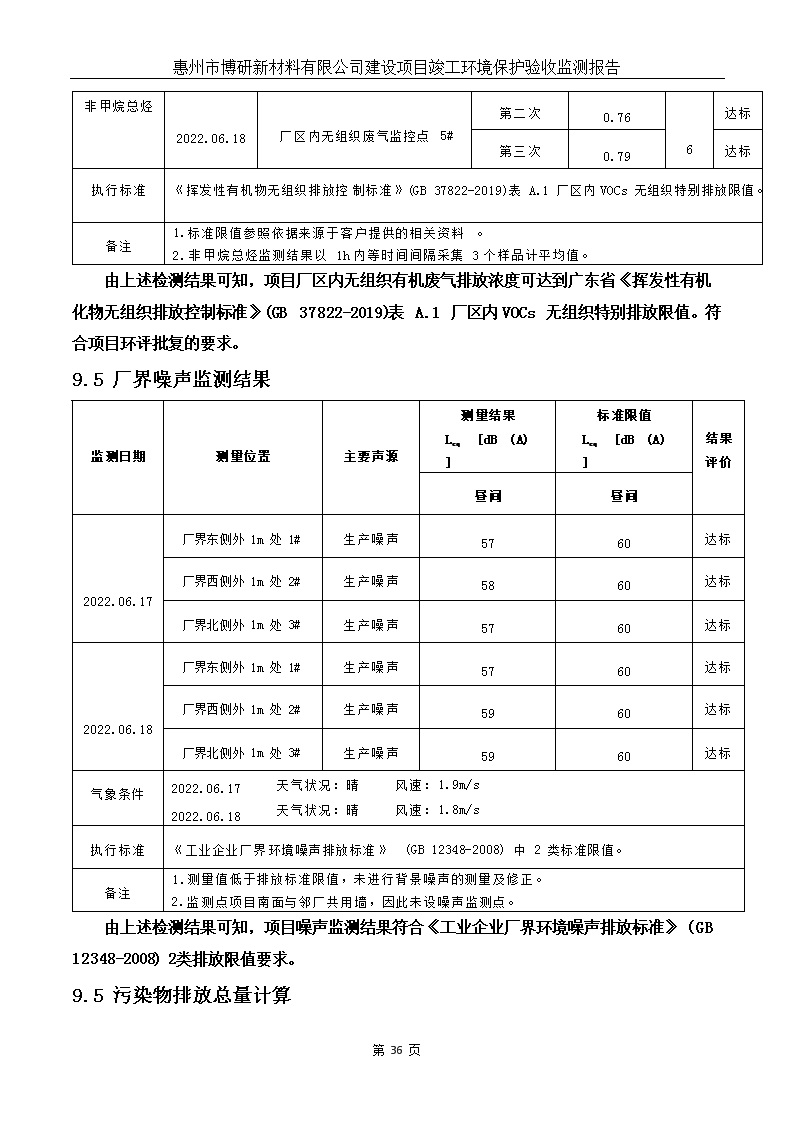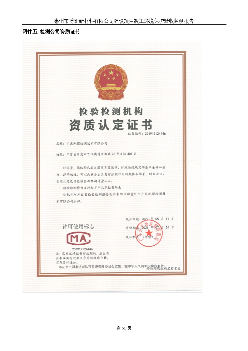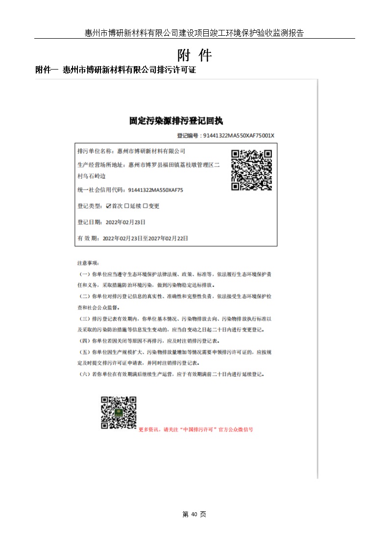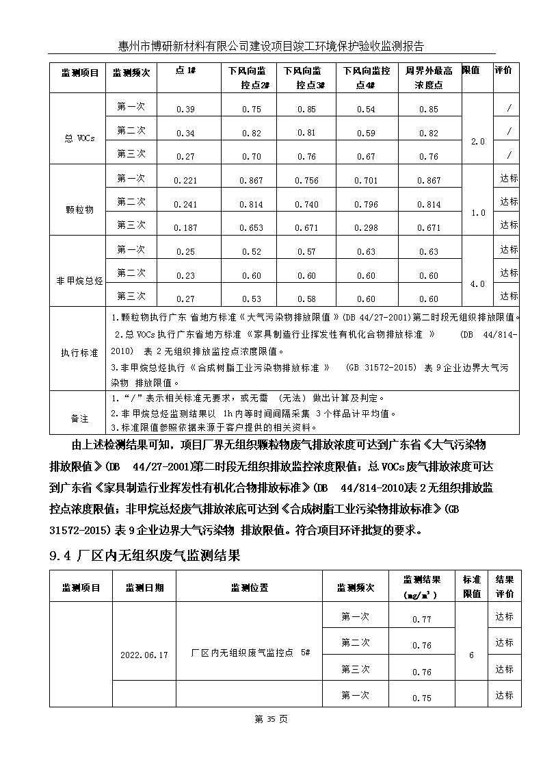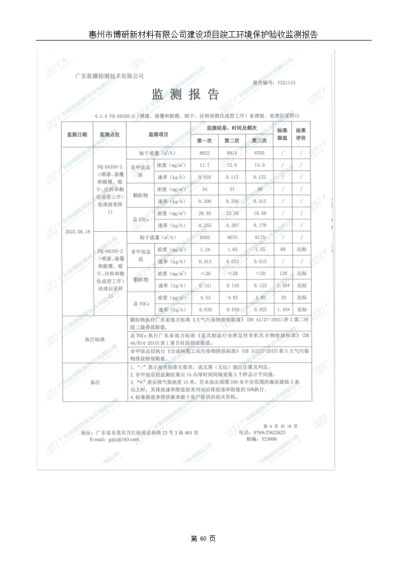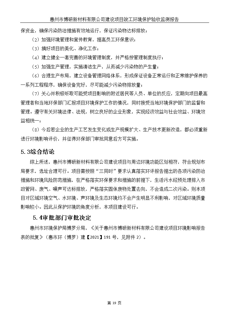 惠州市博研新材料有限公司建设项目 竣工自主环境保护验收监测报告