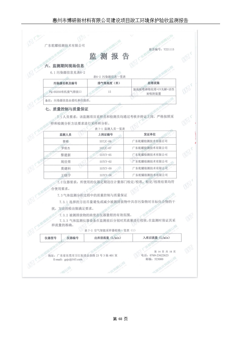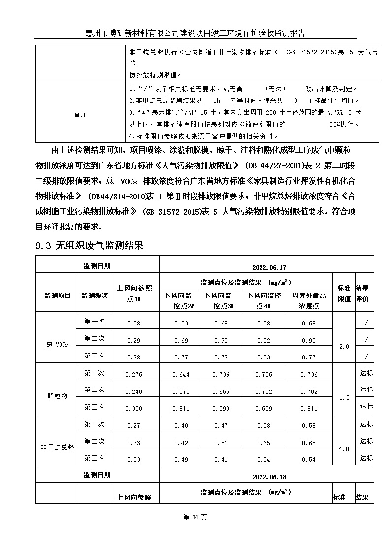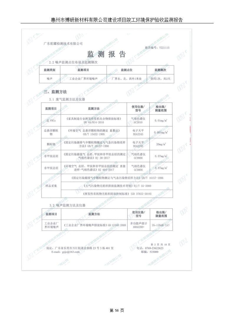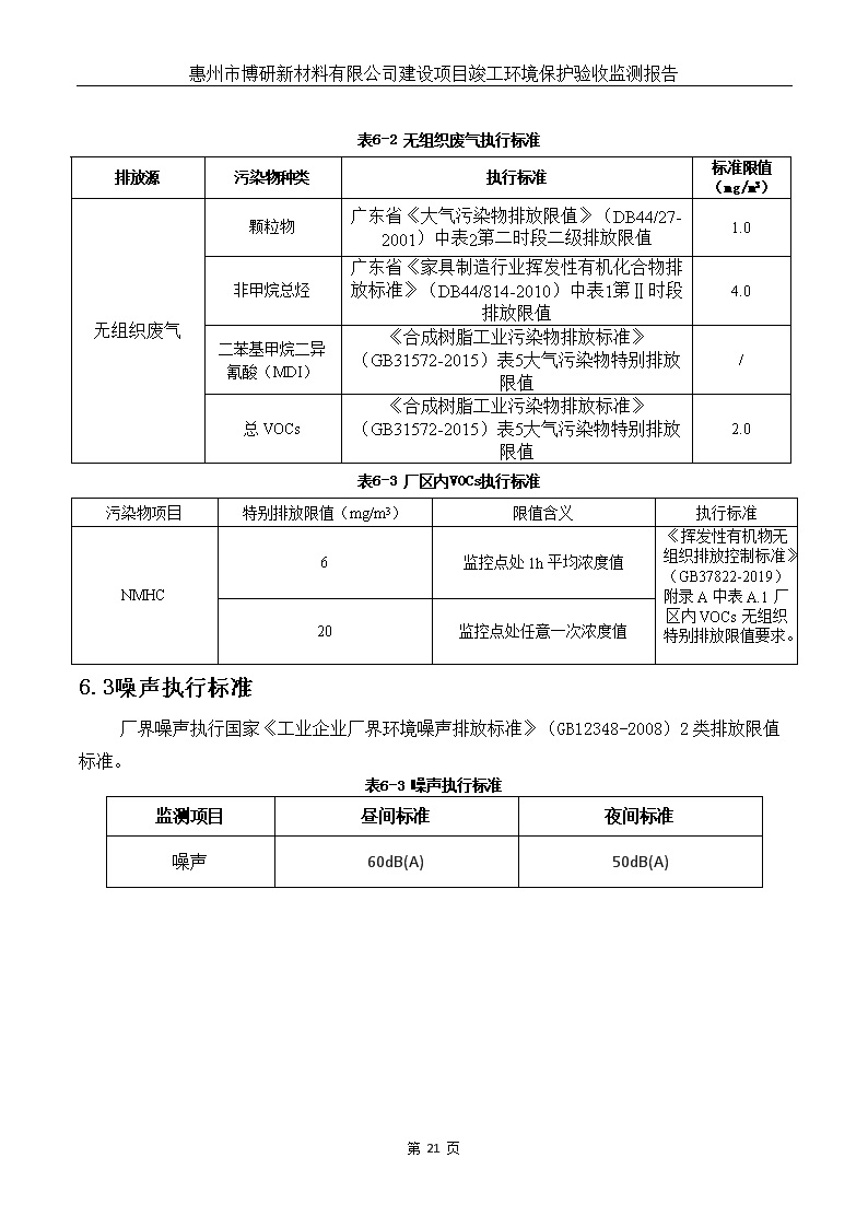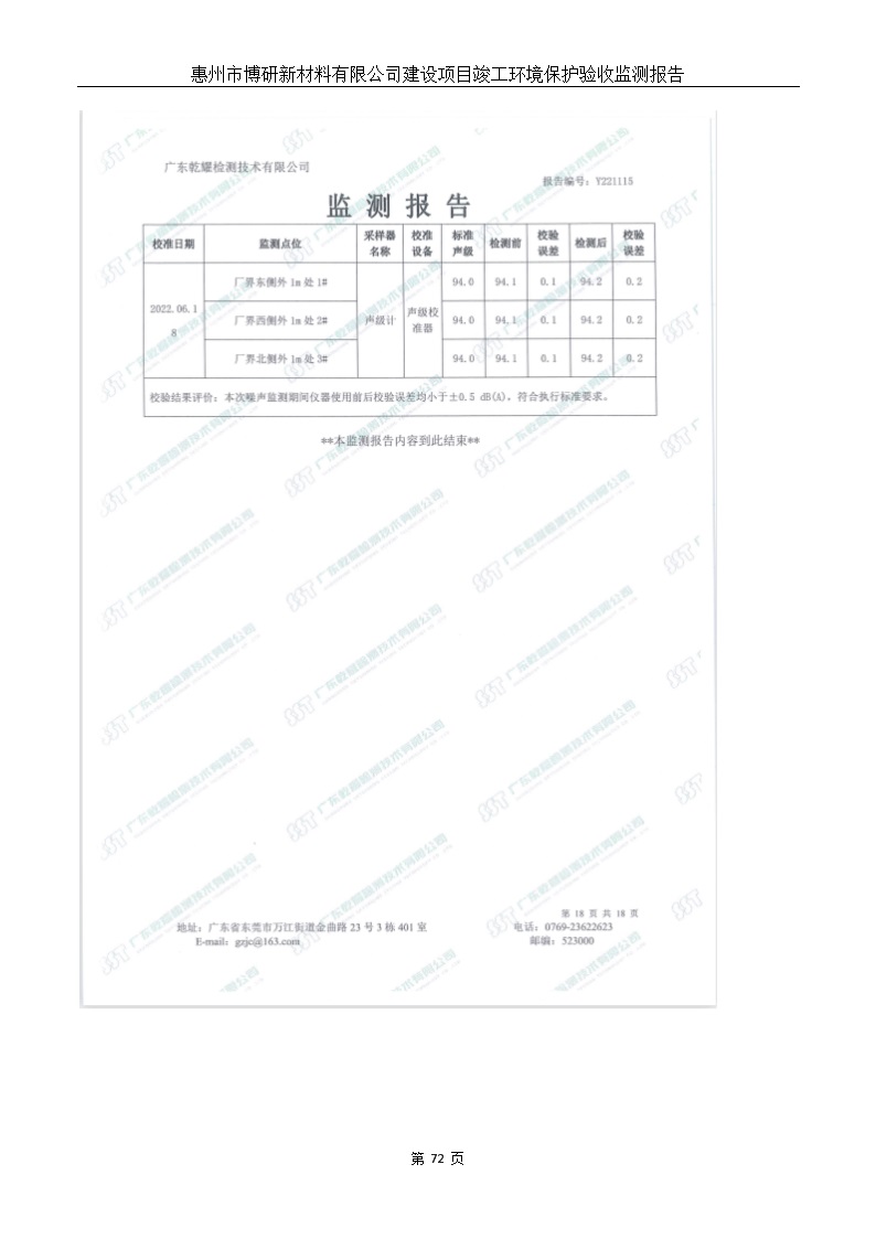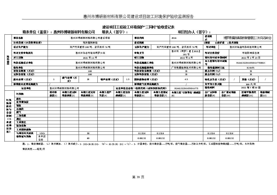 惠州市博研新材料有限公司建设项目 竣工自主环境保护验收监测报告