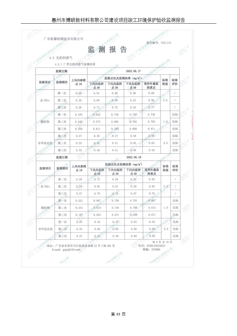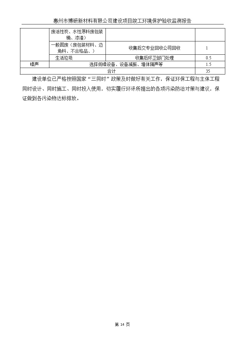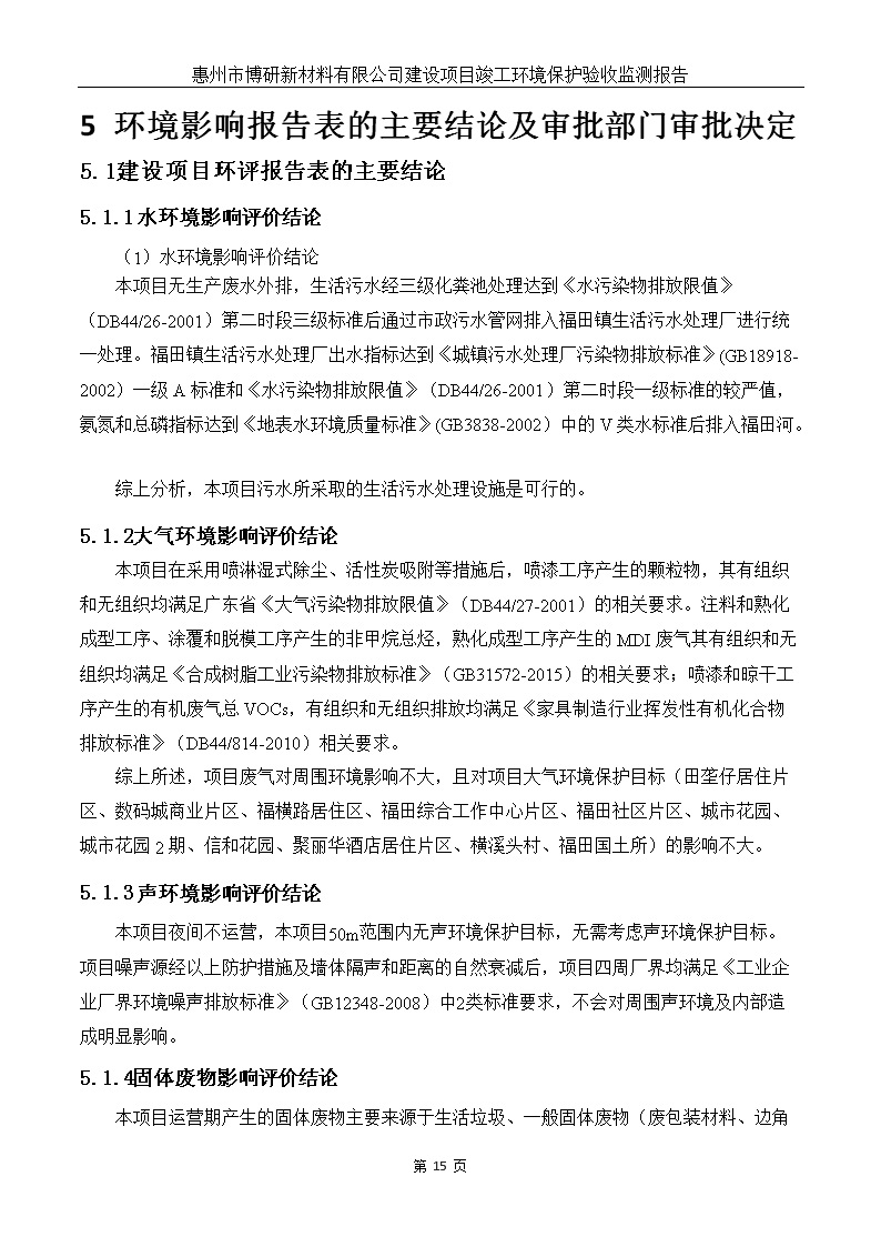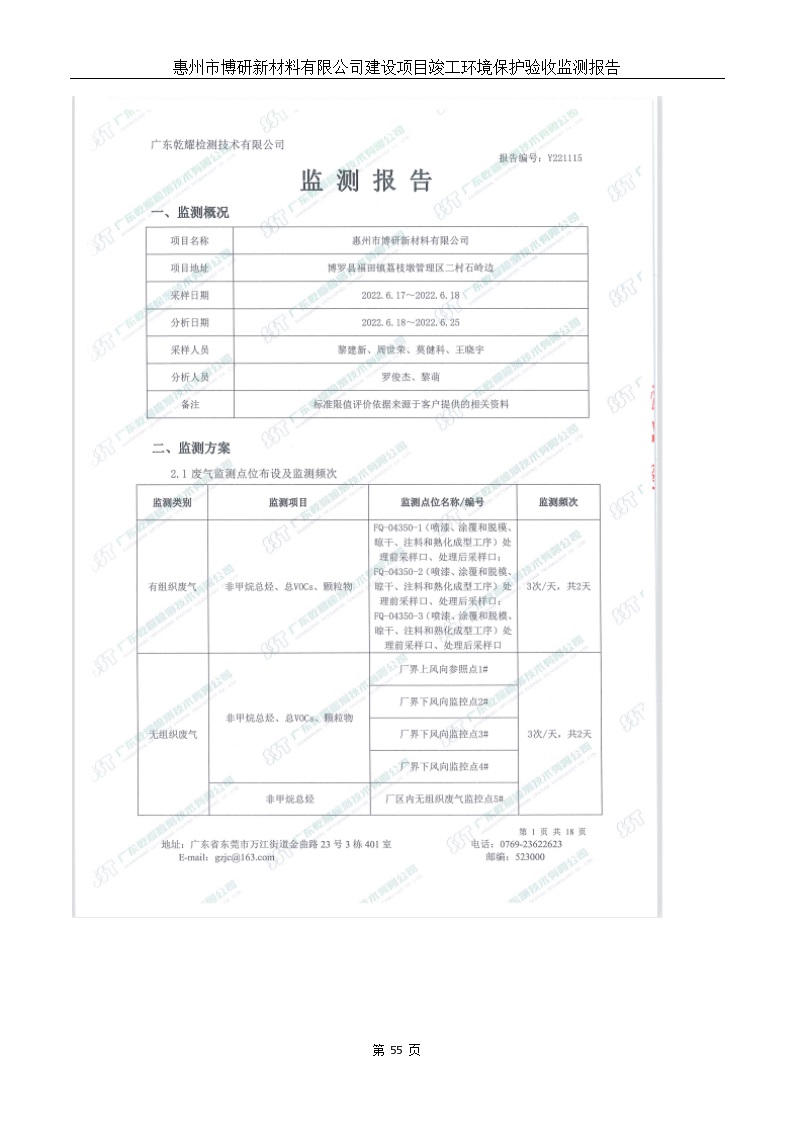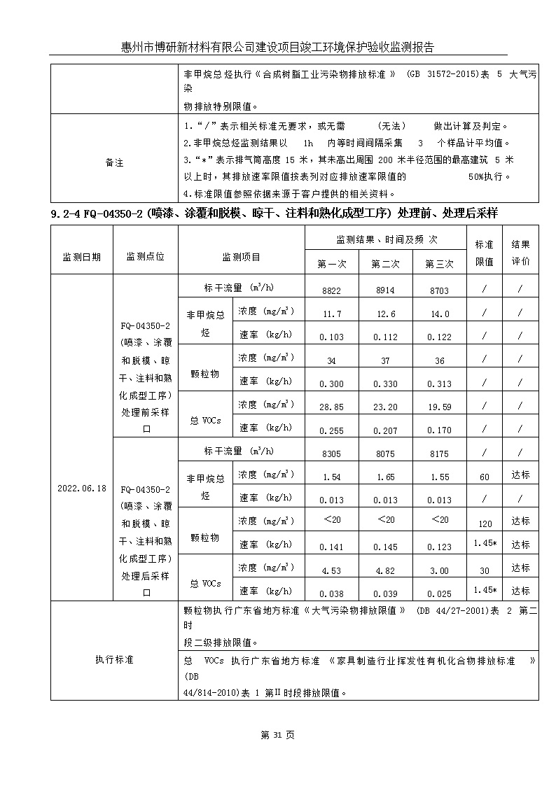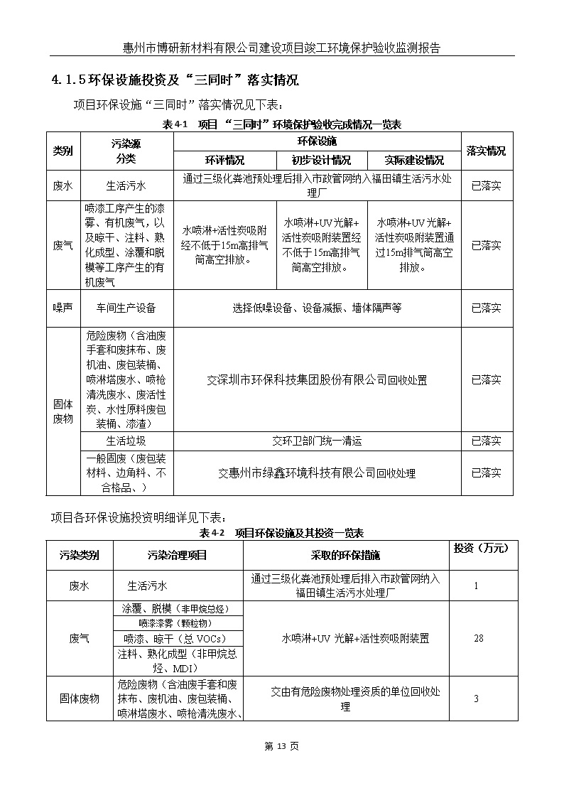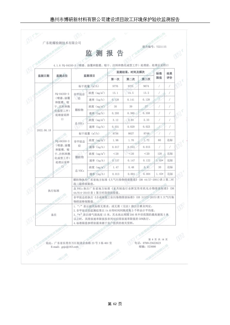 惠州市博研新材料有限公司建设项目 竣工自主环境保护验收监测报告