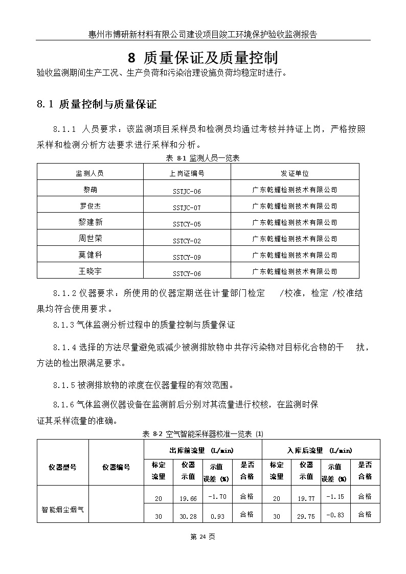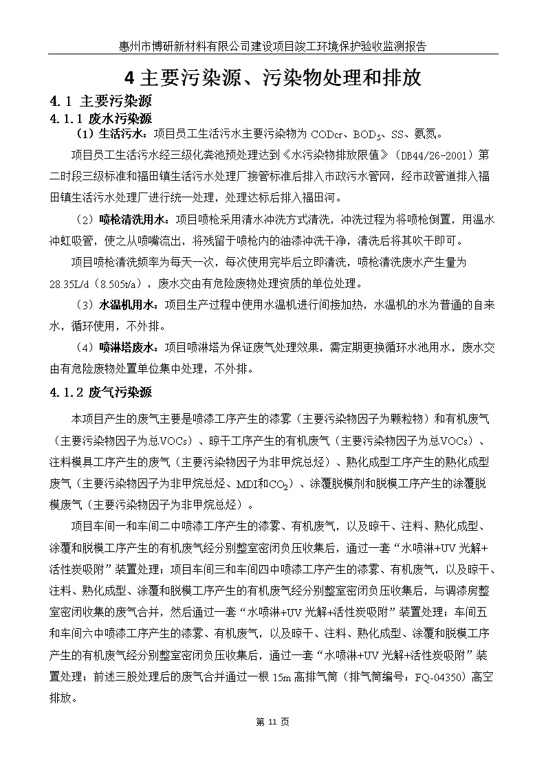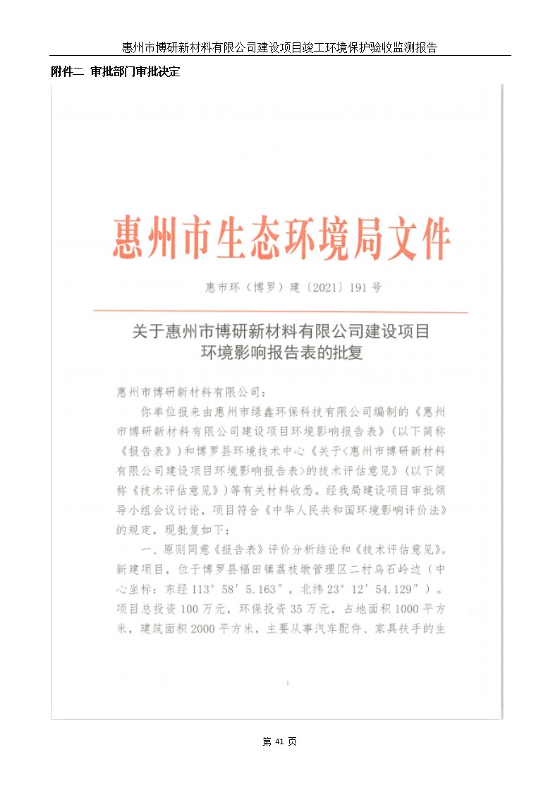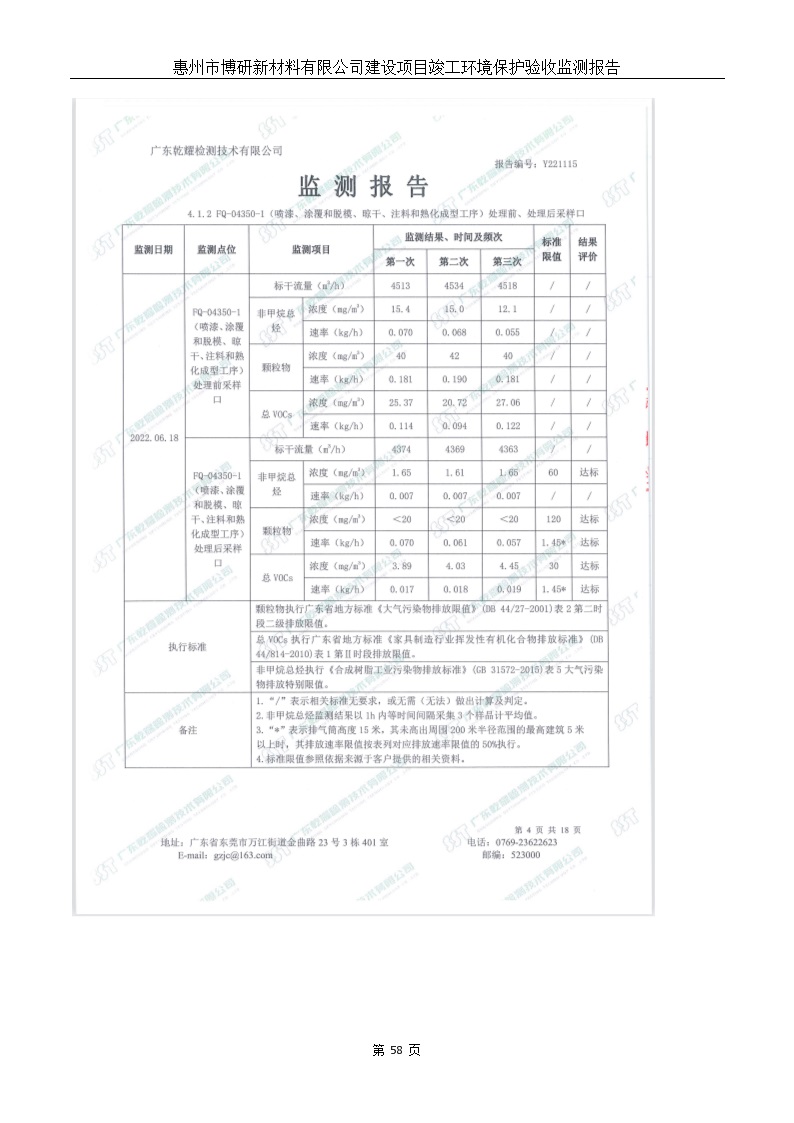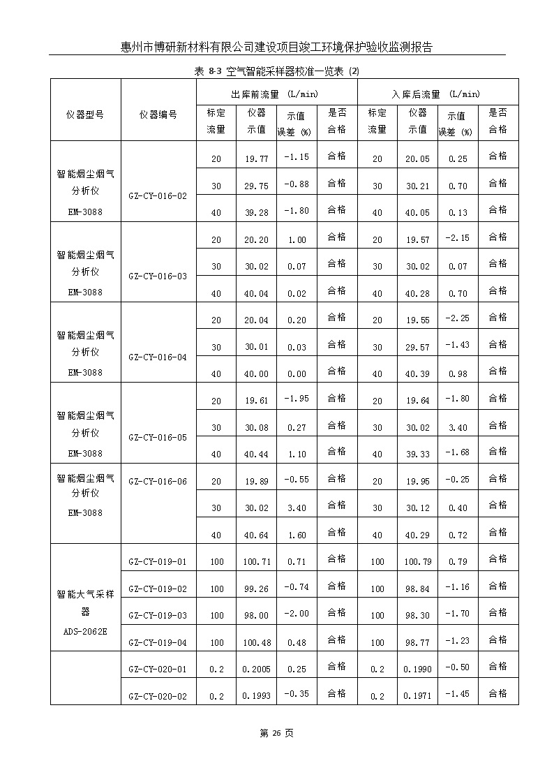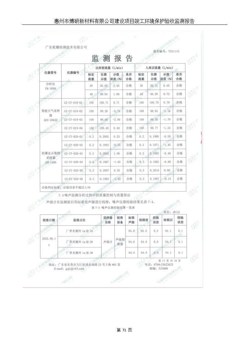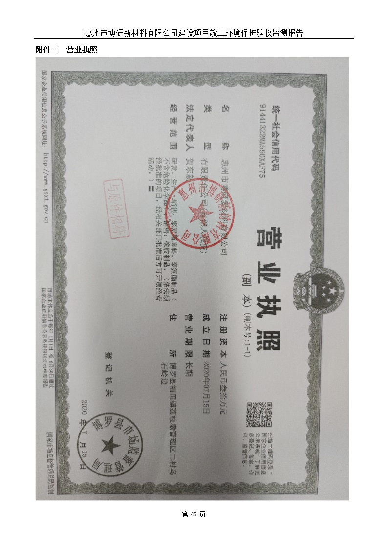惠州市博研新材料有限公司建设项目 竣工自主环境保护验收监测报告