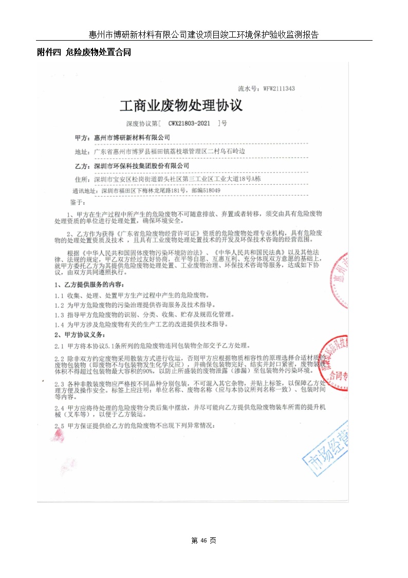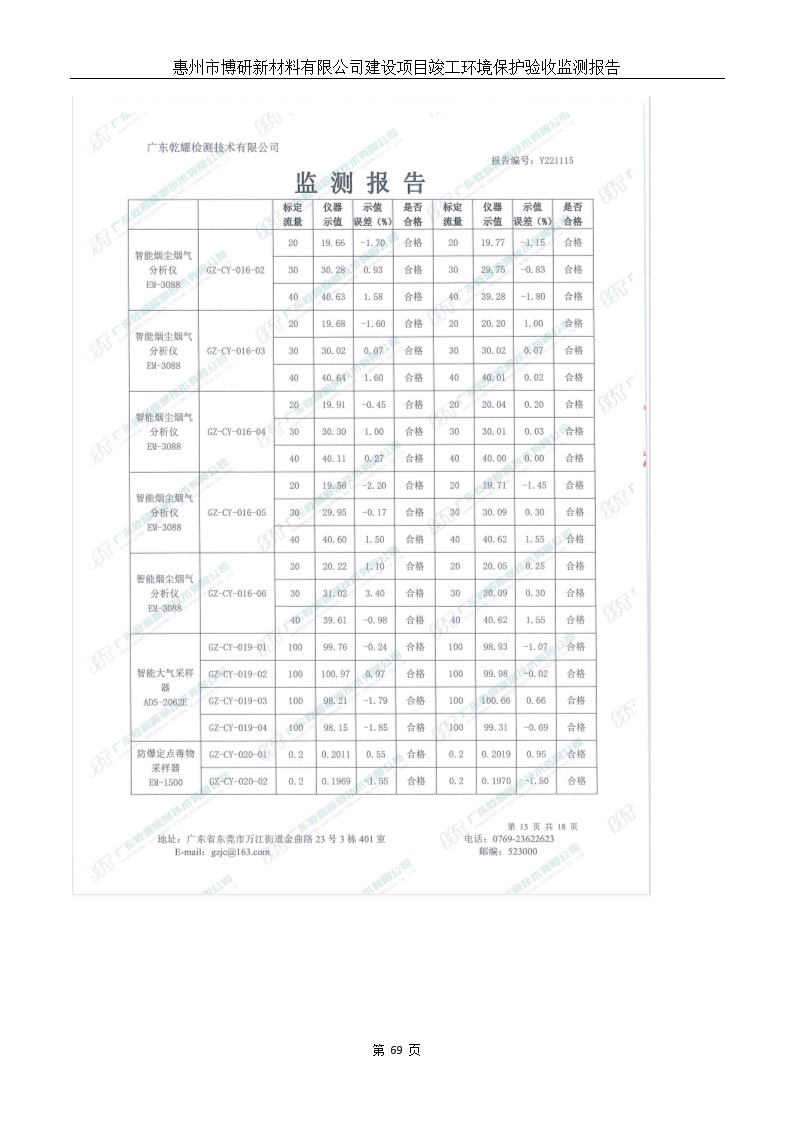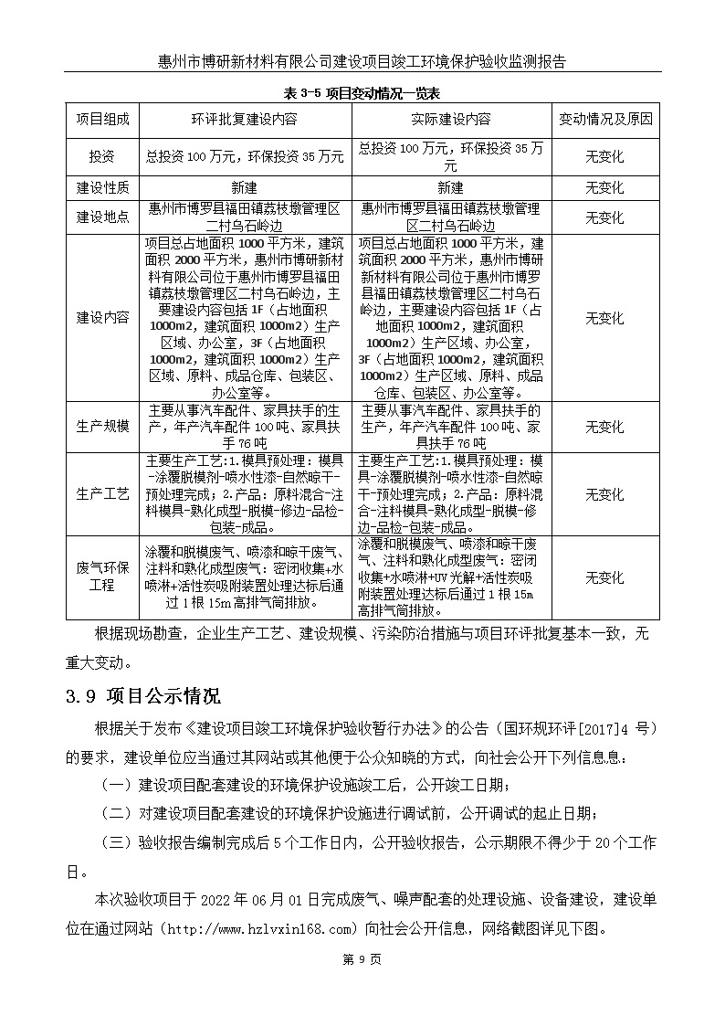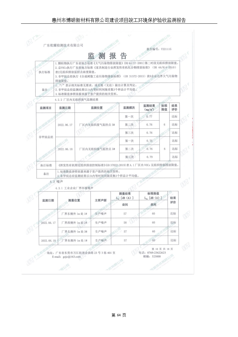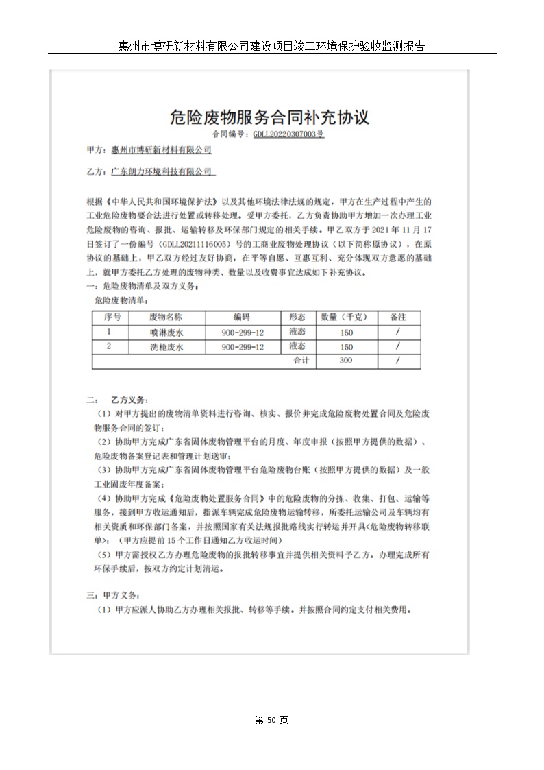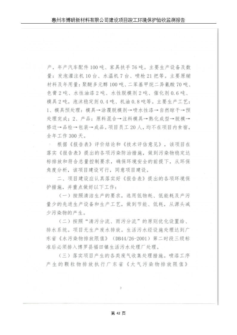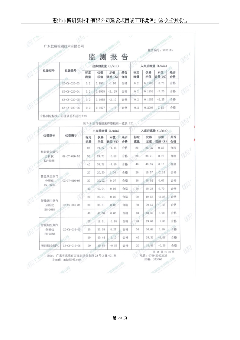 惠州市博研新材料有限公司建设项目 竣工自主环境保护验收监测报告